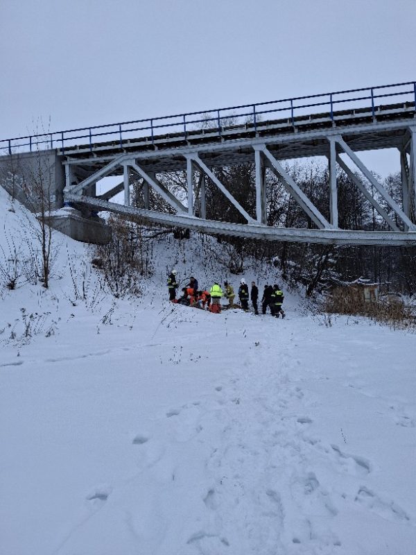 Pomoc przy zabezpieczeniu i transporcie do karetki ZRM 26-letniego mężczyzny znalezionego przy moście kolejowym w Raczkach.
