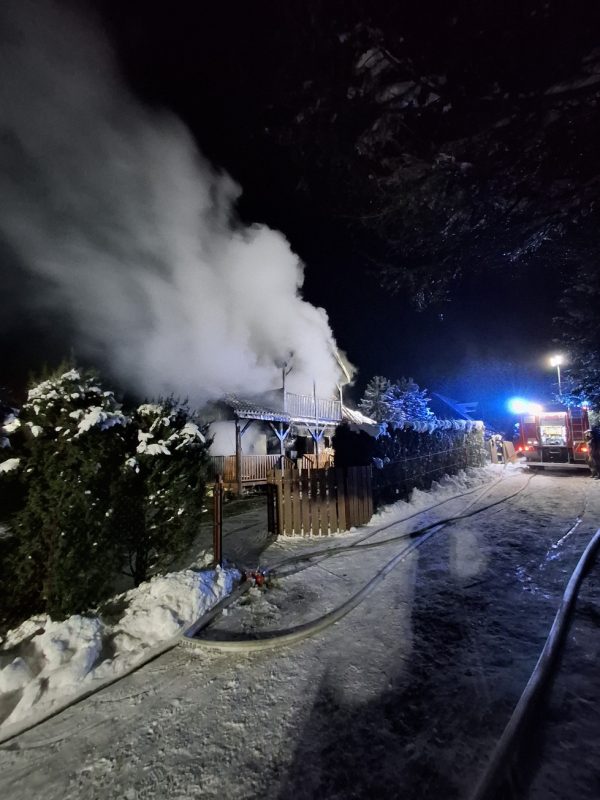 Pożar domu w miejscowości Nowa Wieś gm. Bakałarzewo. Działania gaśnicze prowadzone były przez siedem zastępów straży pożarnej przez 6 godzin