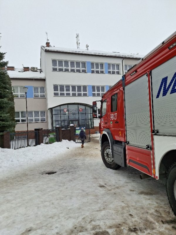 Zwarcie instalacji elektrycznej w Szkole Podstawowej w Raczkach. Na miejscu dwa zastępy straży pożarnej.